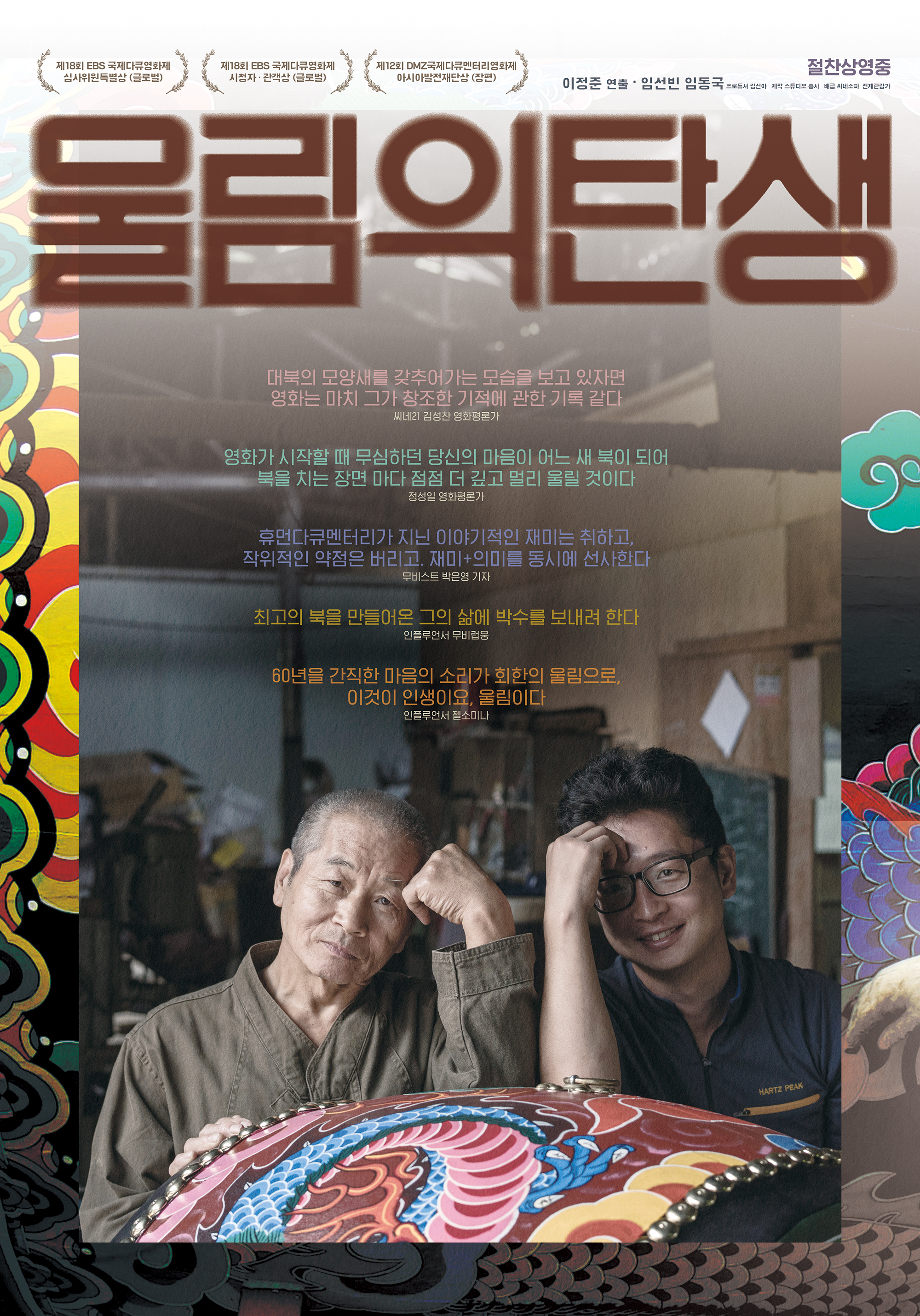 Lim Seonbin is the Gyeonggi Intangible Cultural Asset No. 30 Akgijang. At his mentor’s factory, he made drums all his life to produce drum sounds that resemble his mother's embrace. One day, Seonbin has a problem with his ear and realizes that he’s running out of time. Then along with his kid, Dongguk, his successor, he takes out the timber he has kept for 20 years and starts making a big drum.